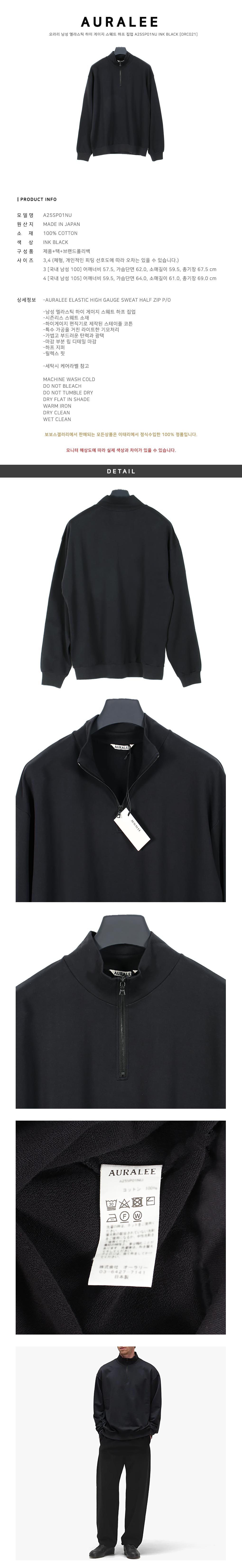 [SALE] 오라리 남성 엘라스틱 하이 게이지 스웨트 하프 집업 A25SP01NU INK BLACK [ORC021]