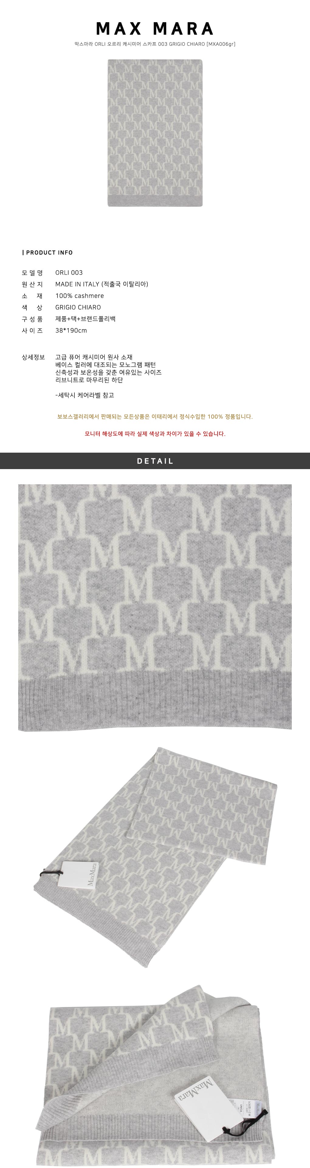 ■색상:GRIGIO CHIARO■구성품:제품+택+브랜드폴리백■사이즈: 38*190 cm