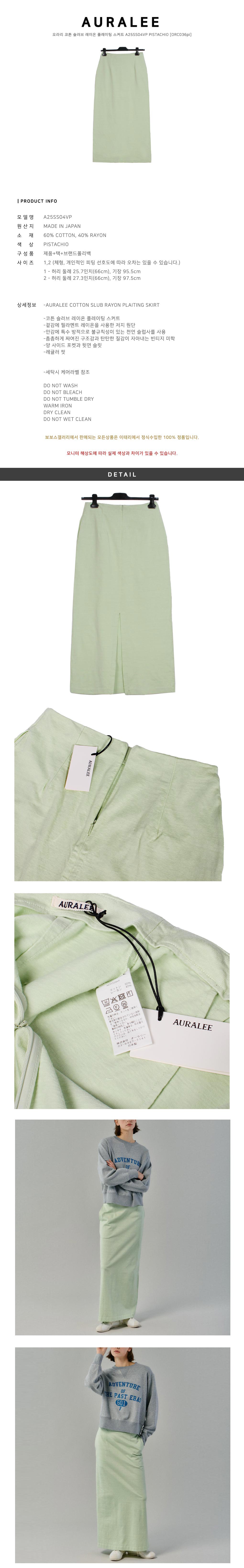 - HOME > BRAND > Auralee > WOMEN > [SALE] 오라리 코튼 슬러브 레이온 플레이팅 스커트 A25SS04VP PISTACHIO [ORC036pi]