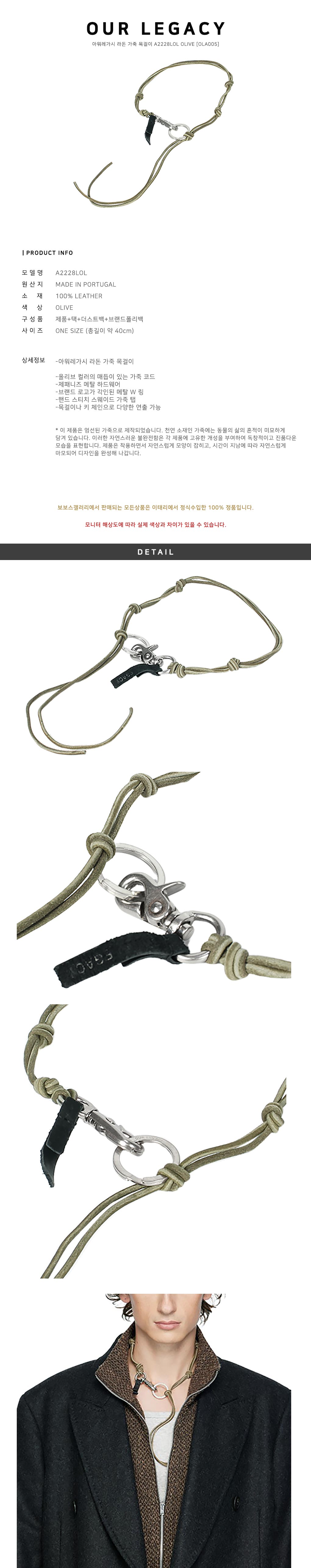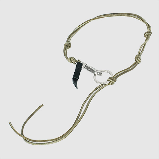 -올리브 컬러의 매듭이 있는 가죽 코드